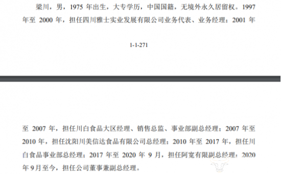 自2020年9月至今,梁川都一直担任公司董事兼副总经理。此后他又将带领阿宽食品如何发展,运营商财经将持续关注。