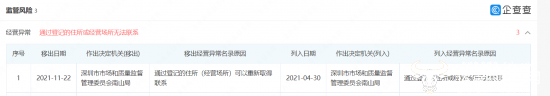 值得一提的是,深圳市比亚迪供应链管理有限公司在2021年4月曾被深圳市市场和质量监督管理委员会南山局列入经营异常名录,其原因为通过登记的住所或经营场所无法联系。