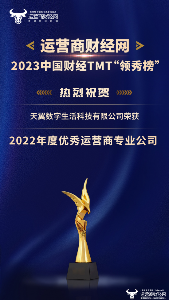 恭喜 天翼数字生活科技有限公司荣获“2022年度优秀运营商专业公司”