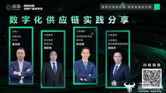 在数字化供应链实践分享环节,森马电商物流总监胡宏峰先生分享了「数字化如何提升服装电商物流服务水平」,西域智慧供应链副总裁林永建先生随即展示了「MRO行业变革与升级的“数字丝绸之路”」,全球捷运副总裁兼首席信息官郭俊杰先生压轴讲述「国际物流企业的物流化、生态化、数字化」,多方位地分享了洞隐一体化供应链云平台及行业数字化方案实际应用效果与价值。