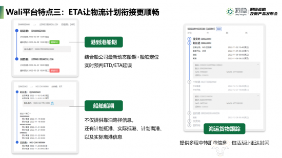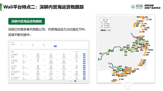 同时,全新发布的Wali供应链可视化平台,通过多数据源融合、大数据、机器学习等技术,提供包括海运、空运、铁运和陆运等运输方式的运力计划、货物跟踪及位置服务,实现供应链全程可视化。Wali平台已经对接全球各大服务商,支持43家船公司、89家航空公司、国内几乎全部的集卡车及主流GPS。