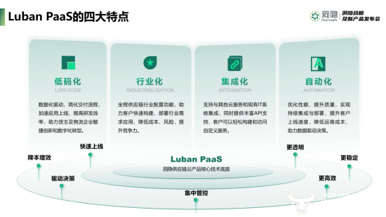 会议中发布的低代码Luban PaaS平台具有低码化、行业化、集成化和自动化四个优势,同时结合专业服务团队在航运、国际物流、货代、制造及零售、第三方物流等行业20年的沉淀,形成了符合行业特性的模板和微服务。Luban PaaS已经成为行业大客户数字化转型的技术底座,也同时满足了SaaS客户业务快速发展的需求变化。