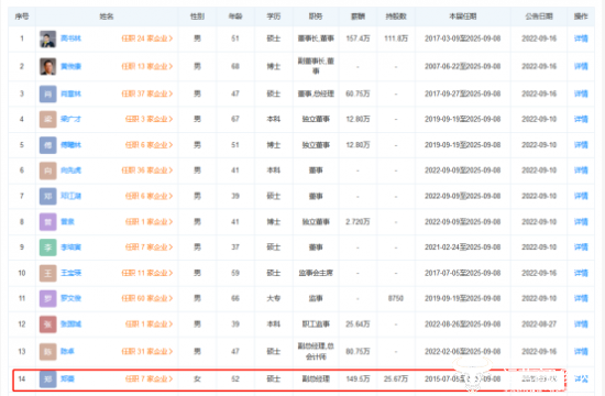 公开资料显示,郑蔓1971年4月出生,大学本科学历、中欧国际工商学院EMBA,其中EMBA应当为在职所读。