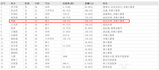 不过张颖的薪酬在东方雨虹的高管中还是名列前茅的,她的薪酬为200万,首先在副总中排名第一,其次她的薪酬仅次于公司总裁张志萍的260万元和非独立董事向锦明的210万元。另一个女副总王文萍年薪只有150万,比张颖低多了。王文萍今年50岁,比张颖年轻。