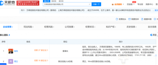 近日,在万得官方账号发布的报道中,周立是以万得副总裁的身份出现的,但是天眼查上对他的职位介绍却是万得资讯联合创始人兼总裁。