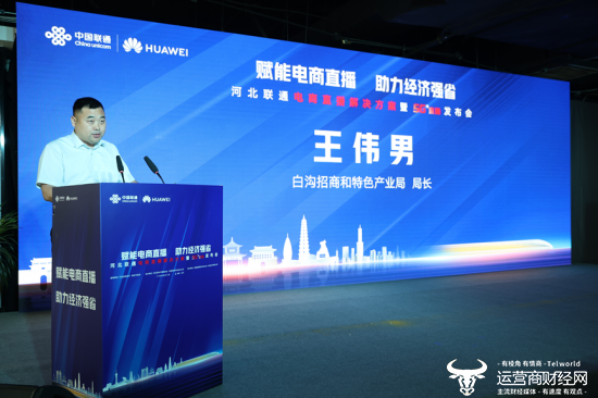 此次发布会由河北省商务厅、保定市政 府指导,河北省电子商务协会与河北联通联合主办。河北省商务厅电商处处长周向阳,保定市商务局副局长甄泳亮,保定市电子商务和信息化处长李方,河北省电子商务协会负责人袁国平,河北联通副总经理胡乐信,河北联通副总经理韩洪江,华为中国运营商业务部副总裁黄雒蒙,华为河北代表处运营商业务部部长蒋俊勇,抖音火山运营商合作部副总经理樊超,白沟新城管委会副主任金雪飞,白沟新城招商和特色产业局局长王伟男,白沟新城改革发展和科技局局长刘磊,白沟新城宣传文化局局长顾延锋等政 府和企业嘉宾出席了发布会。