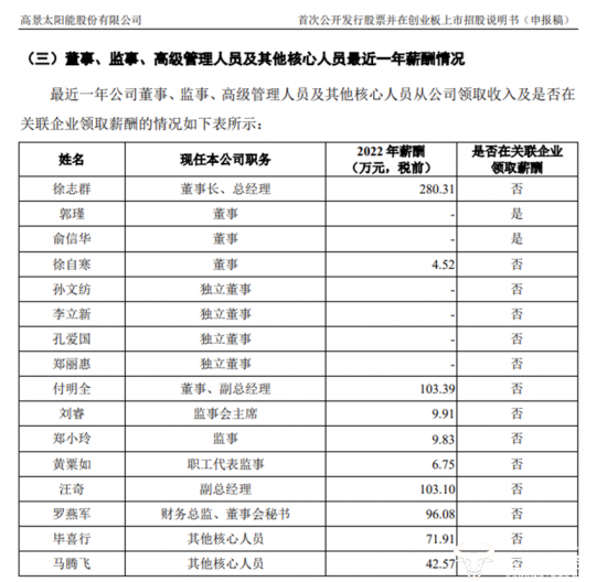 同年12月,徐志群被聘任为高景有限执行董事兼总经理,次年1月成为高景有限董事长兼总经理,2022年11月出任高景太阳能董事长兼总经理。