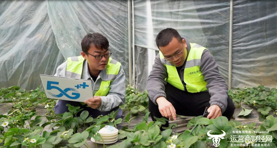 (图注:湖北移动技术人员在智慧农业大棚现场检测物联网设备)