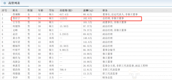 詹任宁的薪酬为182.8万元,詹谏醒的薪酬却只有80.41万元,还不如公司副董事长,而詹谏醒的持股数也没有詹任宁多,詹任宁持有1125万股,詹谏醒只有617.4万股。