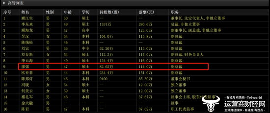 公开资料显示,廖强出生于1976年,今年47岁,1999年参加工作,当时廖强23岁,在工作后,廖强还曾攻读MBA,因此他的高管简介中学历显示的是硕士学历。