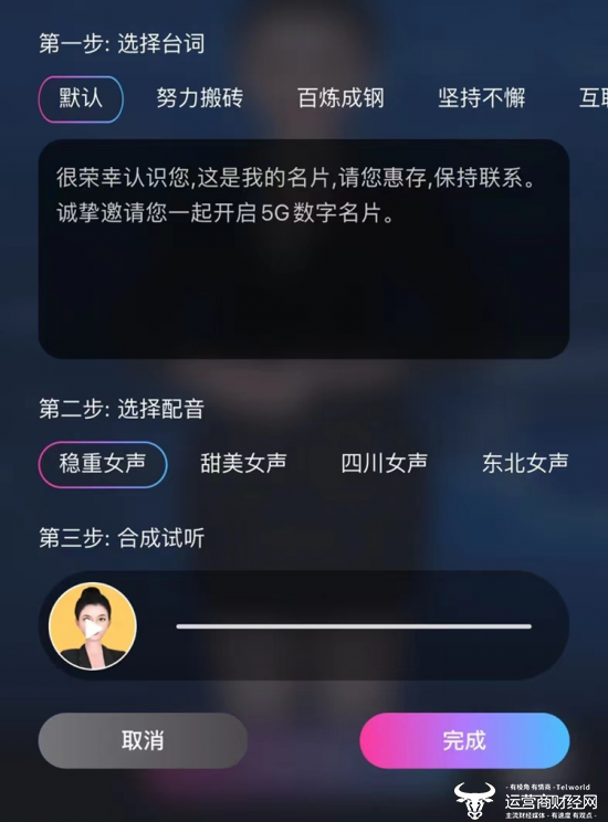 制作数字人名片的方法也很简单,用户只需打开微信搜索“5G数字名片”小程序,点击编辑数字人名片,即可通过一对一个性化捏脸,在线DIY专属数字人,打造出专属品牌和形象。