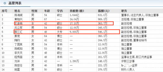 值得一提的是,东方财富网信息显示,王彦肖去年获得的薪酬高达363.7万元,在公司5位副总中,她的薪酬仅次于郭三汇,郭三汇的薪酬为546.1万元,远远超过王彦超的薪酬。