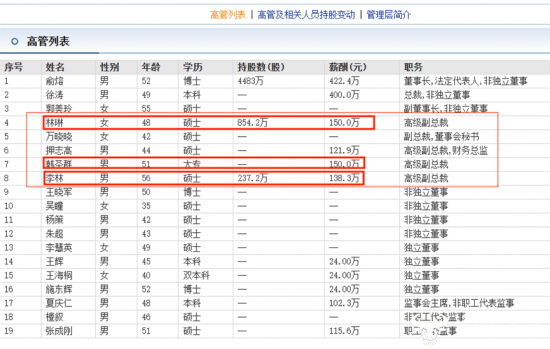 另外在五位副总中,仅有李林和林琳两位副总直接持有公司股票,李林在公司的持股数为237.2万股,而林琳的持股数为854.2万股。