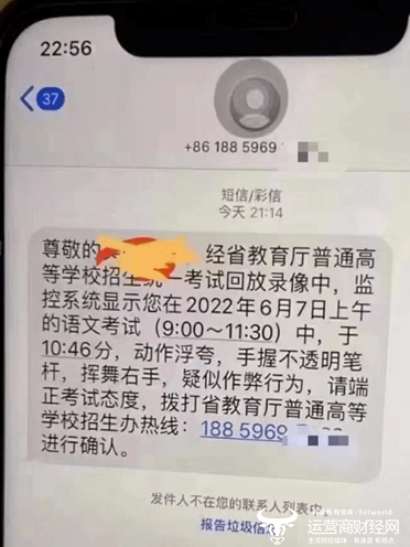 为了骗取钱财,诈骗分子简直无所不用其极,还会冒充教育部门发送短信,称在回放录像中发现考生有疑似作弊行为,利用考生及家长急于澄清的心理,要求其拨打“省教育厅”电话,从而骗取钱财。