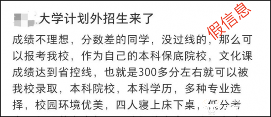 骗局四:“可以提前录取”“内部指标”“花钱补录”?