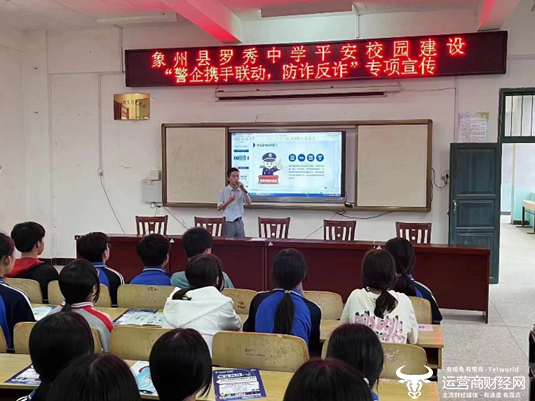 广西来宾,爱心翼站志愿者联合罗秀派出所走进象州县罗秀中学,宣讲反诈知识,派发防范电信网络诈骗宣传手册,提醒同学们实名办理的电话卡、银行卡或者通信业务切不可售卖、转借给他人使用。