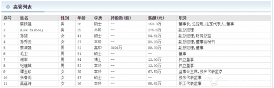 根据东方财富网所公开的薪酬信息所示,年仅37岁的孙秀云年薪达到90.33万,而另一位女副总孙斐的年薪没她高,为84.61万。