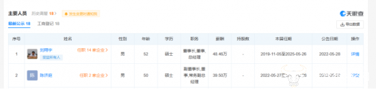 据天眼查显示,陈济庭2022年薪酬39.5万元,和董事长刘翔宇的薪酬相比,也没有差多少。