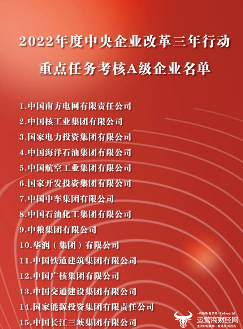 近日,2022年度中央企业改革三年行动重点任务考核A级企业名单公布,其中中国电信、中国移动、中国联通纷纷入选,并且具体排名也一一曝光,接下来运营商财经网试图介绍。