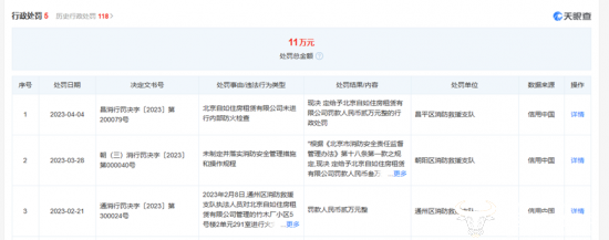 值得注意的是,天眼查信息显示,北京自如住房租赁有限公司曾多次因消防问题被相关消防救援支队处以罚款。