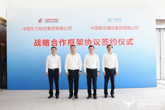 6月29日,中国移动通信集团有限公司与中国东方航空集团有限公司在上海签署战略合作框架协议。中国移动董事长杨杰、中国东航总经理李养民出席签署仪式,中国移动副总经理赵大春、中国东航副总经理成国伟代表双方签约。