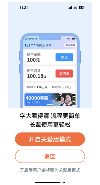 在数字化时代背景下,各式智能软件应运而生,也带给“银发族”不少困惑。为帮助老年人跨越数字鸿沟,切实感受到信息化、数字化时代下的高效、便捷,江苏电信全面提升了APP及网厅的适老化和无障碍能力,正式上线天翼生活关爱版。