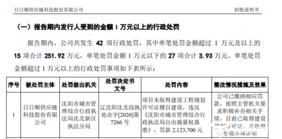 值得注意的是,招股书显示,2020年至2022年期间,日日顺供应链收到多项行政处罚,其中罚款数额最高的罚单为辽沈阳沈北综执处决字[2020]第7266号。