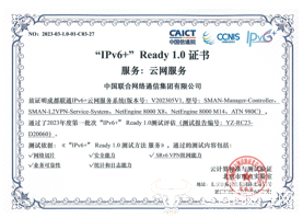四川联通的5G网络大带宽能力通过联通智能城域网承载,该网络采用了中国联通智网创新中心自主研发的智能网管系统,能够进行网络数据和业务数据的采集、分析和管控。该系统已通过了中国信息通信研究院的“IPv6+”Ready1.0测试评估,并获得了2023年度第一批次“IPv6+"Ready1.0认证证书。这为用户提供了更加稳定和快速的网络服务奠定了坚实的基础。