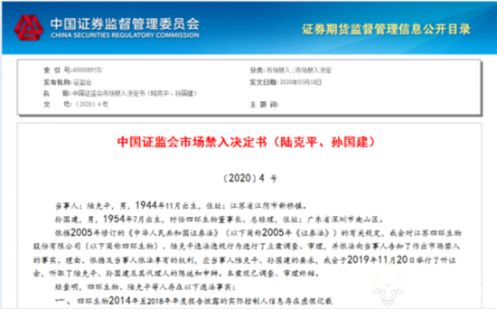 当时,经证监会查明,四环生物2014年至2018年年度报告披露的实际控制人信息存在虚假记载,陆克平控制陆某、郁某芬等13个证券账户及2个权益工具增持四环生物股票,以扩大其所控制的表决权数量,陆克平因涉及多项违法,最终合计被罚2734万元,并被采取终身市场禁入措施。
