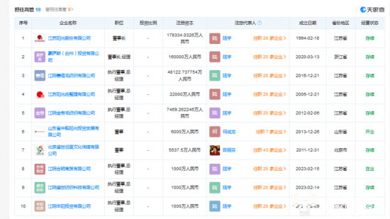 据天眼查资料显示,陆宇是江苏阳光创始人陆克平的儿子,出生于1975年,今年48岁。