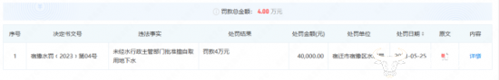 值得注意的是,公司曾在5月25日受到宿迁市宿豫区水利局的行政处罚,原因是未经水行政主管部门批准擅自取用地下水,被罚款4万元。