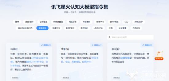 讯飞大模型中有一个“准备面试”的版块,用户可以将平台作为面试官,设定自己面试的职位类型,通过模拟面试场景与考官对话。