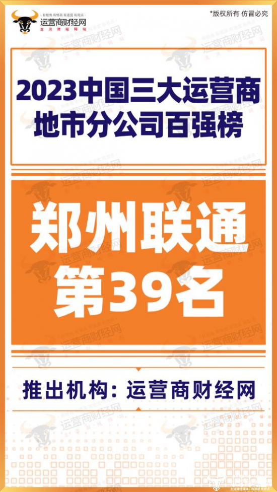 也因此,在“2023三大运营商地市分公司百强榜”中,郑州联通一举荣获第39名的成绩。虽说与在集团中的排名差距不小,但要知道这一排名是在中国移动及中国电信广东、江苏、浙江等省的大型友商竞争下获得的,其实很不简单。