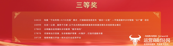 专题赛组委会邀请到来自科研院所、联盟协会、科技领军企业的业内知名专家,对入围决赛项目进行集中评审,根据大赛的规则,评委从项目创新性和完整性、实用性、商业性、社会效益多个维度对参赛项目开展公平公正的评审,最终“依托千兆光网+大数据AI,构建基层治理视联网平台——平安视联”“建设数字家庭,创新美好生活”“天翼云电脑:基于千兆光网,算力普惠的应用方案”等10个项目获一等奖。