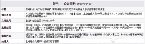值得一提的是,2023年5月10日据芯海科技公开信息显示,芯海科技股份有限公司及时任董事长兼总经理卢国建、时任董事兼财务负责人谭兰兰、时任独立董事兼审计委员会召集人丘运良、时任董事会秘书黄昌福曾被上海证券交易所科创板公司管理部采取监管警示措施。