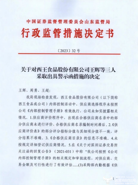 值得注意的是,公司董事长王辉、总经理周勇、董秘王超等多名高管近期收到了山东证监局出具的警示函,原因是公司供应商选择程序并没有按照公司《内部控制管理手册》有效执行,没有如实披露相关情况,存在合格供应商名录编制时间滞后等5大问题。