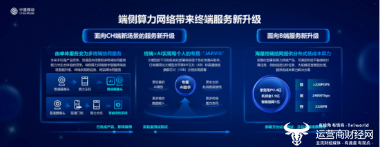“AI 大模型的下沉和私有化部署,还将实现终端用户每人都拥有个性化专属AI助手,面向CH端,端侧算力网络将能够实现由单体服务变为多终端协同服务;面向B端,端侧算力网络能够实现海量终端结网提供分布式低成本算力。”中国移动终端公司副总经理汪恒江强调,端侧算力网络通过汇聚家庭、个人、行业设备的泛在算力,将打造出具有空间计算场和并网计算场景两大服务场景及商业模式,实现终端服务全新升级。