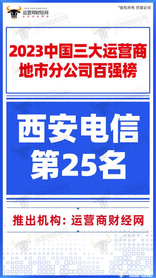 据运营商财经网独家发布的“2023三大运营商地市分公司百强榜”显示,西安电信位居全国所有地市分公司第25名。