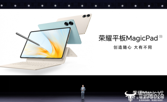 7月12日,荣耀Magic V2暨全场景新品发布会在北京水立方举行,荣耀Magic V2、荣耀平板MagicPad 13、荣耀手表4、荣耀智慧屏5等多款新品共同亮相。作为首款Magic系列的平板产品,荣耀平板MagicPad 13是行业唯一拥有13英寸2.8K IMAX Enhanced护眼屏、行业首创裸耳3D空间音频、基于MagicOS 7.2打造的移动办公新体验的平板电脑,是迄今荣耀最强的大屏旗舰办公平板。