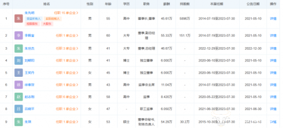 据天眼查显示,朱先明2021年薪酬为45.61万元,比公司的副总经理,也就是他的表姐夫薪酬还低。