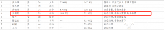 这么来看,吴端明用10年的时间从会计成为公司高管,他的综合能力还是很被看重的。并且他的薪酬与同为副总经理级别的其他人相比是最高的,为72.32万元。