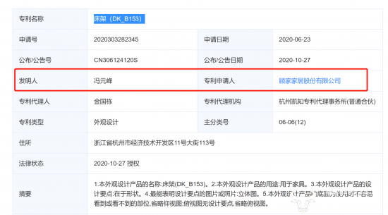 冯元峰的名字出现在不少顾家家居申请的专利中,比如《床架(DK_B153)》、《一种沙发座垫小角度调节机构》、《一种翻转靠垫连接角码及靠垫翻转装置》、《一种便于走线的用于功能性沙发的驱动组件》等,看来他在研发领域也是作出了一定贡献的。