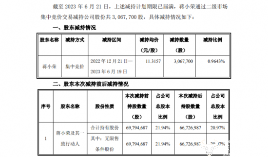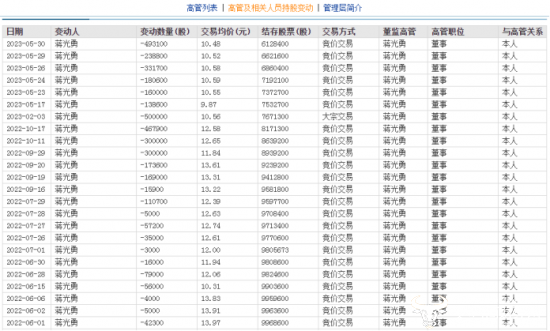 据不完全统计显示,2022年6月1日,蒋光勇结存股票数量为9968600股,截止到2023年5月30日,他的结存股票已减持至6128400股,按照9.87元-13.97元的交易均价计算,其减持价值约4600万。