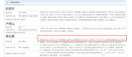 由此,运营商财经网关注到了小崧股份的高管团队,并试图揭秘其副董事长蒋光勇的过往经历。
