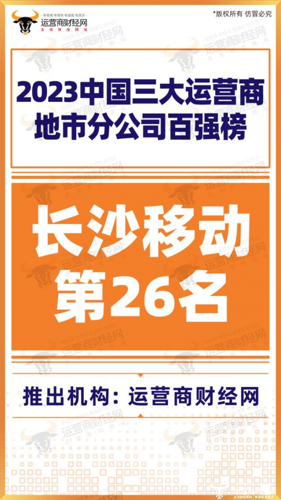 其次,在运营商财经网独家发布的“2023中国移动地市分公司33强榜”中,长沙移动高居集团第16名。