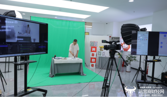 与开朗时尚的奶奶们不同,仇方国老先生散发着浓浓的书卷气。近10米的千字文小楷长卷在他手中缓缓拉开后,收获了现场一片喝彩。在大家的邀请下,仇老先生当场作画,随着时而勾勒,时而点染,一幅意趣盎然的“吉利图”跃然纸上,果实累累的荔枝树下,出生的小鸡憨萌可爱。与此同时,绿幕旁边的显示器中同步记录着整个作画过程,唯一不同的是作画的背景由绿幕变成了一幅水墨风景。拍摄完成后,仇老先生连连称奇,不禁赞叹这是传统文化与现代科技碰撞,居然结合的如此完美。