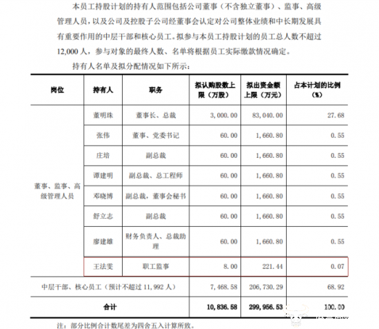 值得一提的是,格力电器为了激励员工、留住核心人才,于2021年推出了第一期员工持股计划,涉及员工多达12000人。这次员工持股计划中,王法雯认购了8万股,占本计划0.07%的比例。