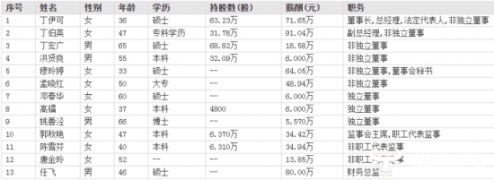 根据东方财富网公开的薪酬信息所示,丁伊可的年薪为71.65万元,不敌副总经理丁伯英91.04万元的年薪。