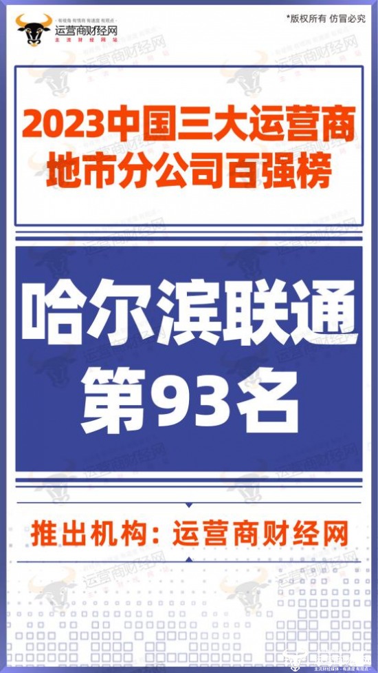 另外,在“2023三大运营商地市分公司33强榜”中,哈尔滨联通位列第93名。看似不算靠前,但其实能够上榜就已是不简单的事,毕竟是与全行业地市分公司作对比,且还有行业巨无霸中国移动的参与,竞争十分激烈。
