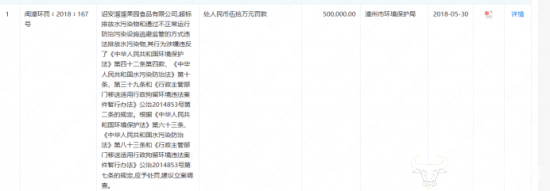 同样的事情也发生在2016年,5月9日诏安溜溜因为超标排放水污染物被福建省诏安县环境保护局罚款22740元;11月16日,该公司因为生产废水通过污水管道的窨井下方缺口排入雨水沟,漳州市环境保护局对其处以罚款48467元。